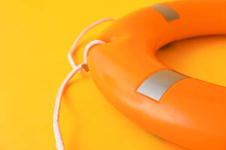 Lifebuoy ring on color background