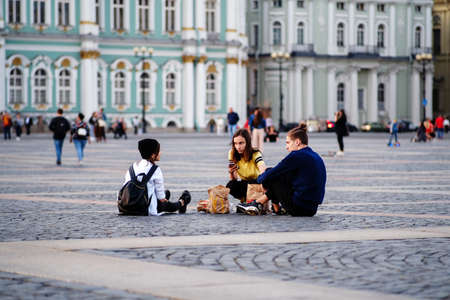 The city is full of tourists, people are walking around the city, the closing of the tourist season of St. Petersburg. Russia. October 1, 2020