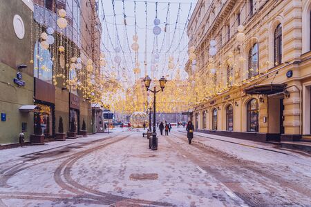 Moscow, Russia -January 2. 2019. Mass Christmas celebrations on a Lubyanka Square