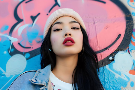 Portrait of pretty casual teenager girl in cap outdoor. Urban street fashion.