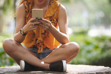 The girl is holding smartphone