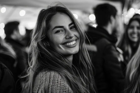 Portrait of a beautiful young woman smiling at the camera in a nightclub