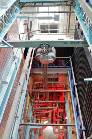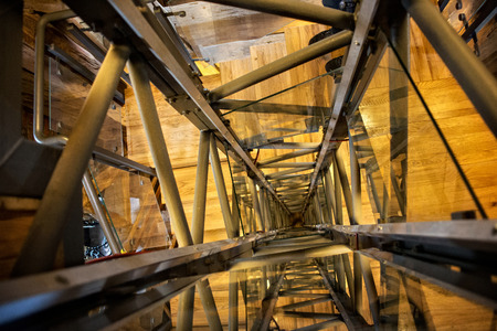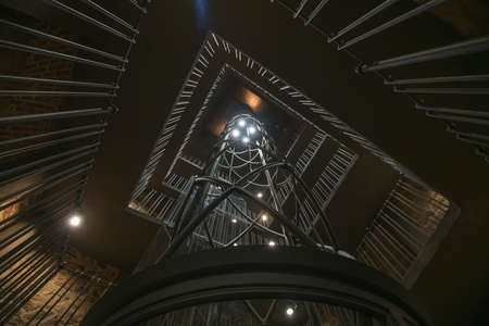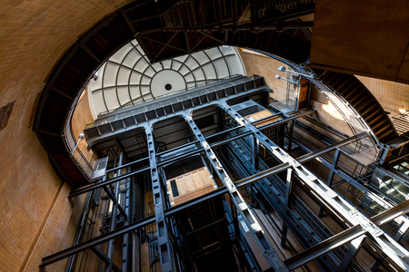 Low angle view of the Elevator inside the Prague Astronomical Clock tower in Czech republic