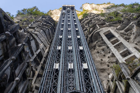 Elevator shaft inside Schlossberg hill above the city in Graz, Austria
