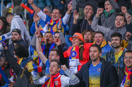 Andorra La Vella, ANDORRA : 2022 APRIL 8 : FCA FANS IN ACTION IN THE MATCH OF PRIMERA RFEF FC ANDORRA 2 - 1 REAL MADRID B