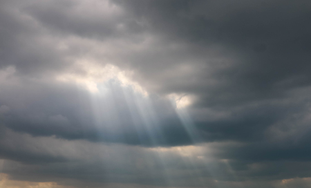 Ray of lights sunbeams break through thick clouds