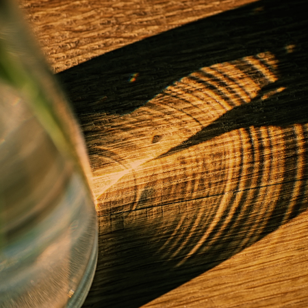 Shadow of a hand holding a wine glass on the wall with chiaroscuro from the window
