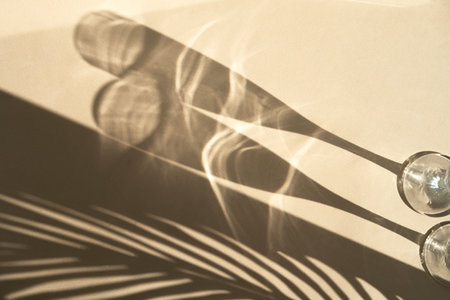 Shadow of a hand holding a wine glass on the wall with chiaroscuro from the window