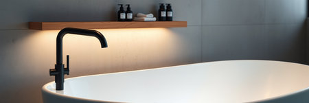Modern tap and white ceramic bathtub bathroom with wall lamp interior building decoration, concept bathroom contemporary