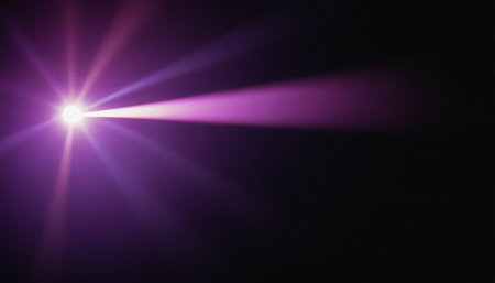 Radiant light beam glowing on a pitch-black backdrop, close-up view