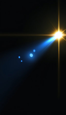 Stunning Radiant Beam Illuminating Dark Texture Backdrop with Burst Effect and Lens Flare Overlay