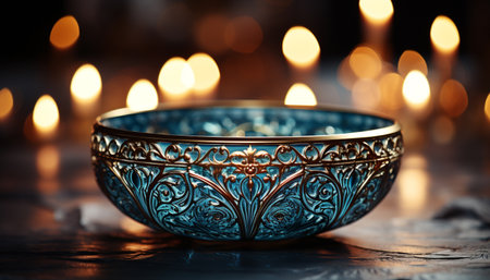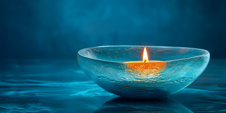 Casting a Warm Glow: Illuminating the Night with a Candle in a Blue Bowl. Concept Night Photography, Candlelight, Blue Bowl, Warm Glow, Illumination