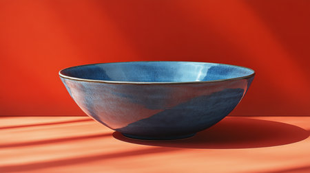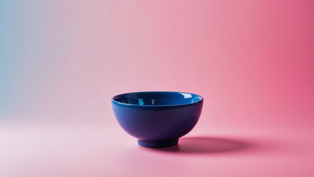 AI Generated. Blue ceramic bowl on a pink gradient background