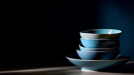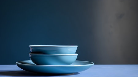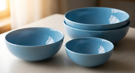 AI Generated. Blue Bowls with Smooth Textures and Natural Light