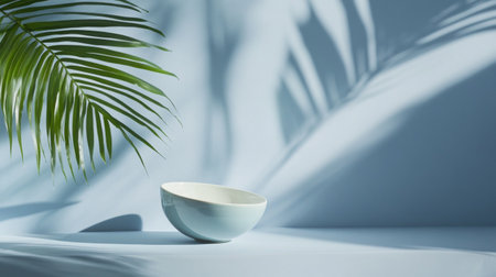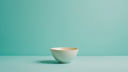 A simple minimalist composition featuring a white bowl placed on a pastel green surface, illuminated by soft natural light.
