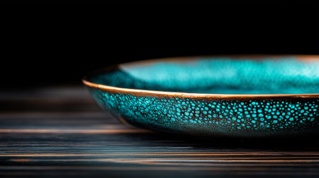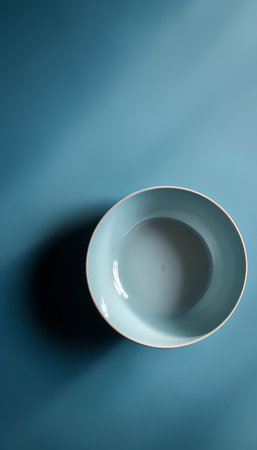 Elegant turquoise bowl on a blue surface with a pronounced shadow