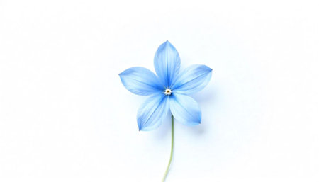 A single delicate blue flower on light blue background