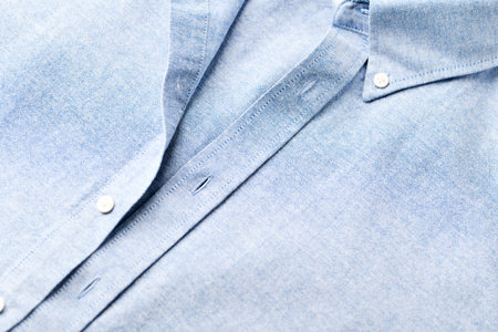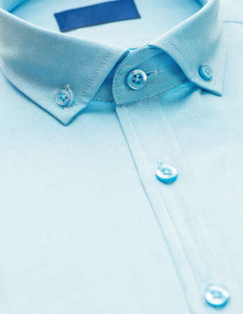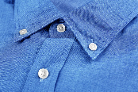 blue shirt with a focus on the collar and button, close-up