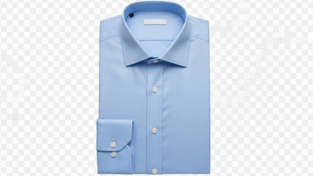 A neatly folded light blue formal shirt displayed against a transparent background. The shirt features a classic collar, long sleeves with buttoned cuffs, and a button-down front. It has a pocket on the left side.