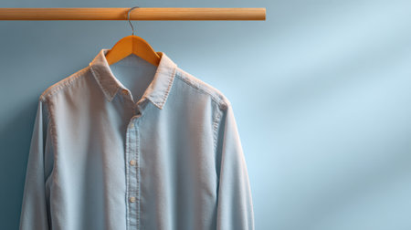 This close-up image features a light blue men's shirt showcasing its soft texture and clean design, perfect for casual wear or modern fashion displays.