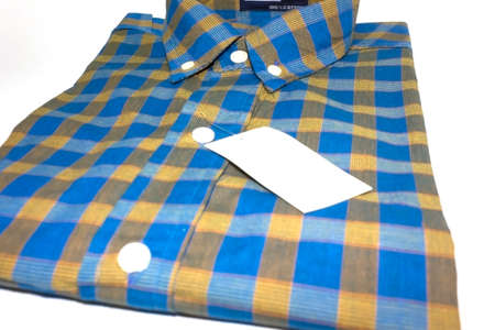 Cardboard tag with space for text on white shirt, closeup