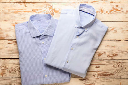 New man shirts on wooden background