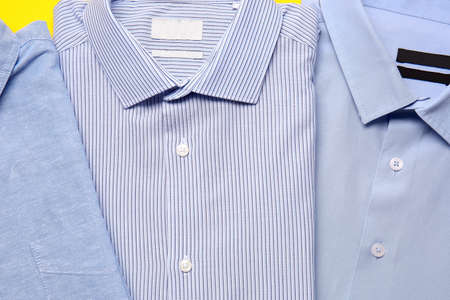 Stylish male shirts on color background, closeup
