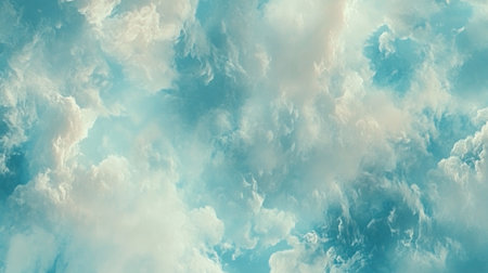 Vast sky adorned with a tapestry of clouds against a deep blue backdrop. Serene cloudscape illuminated by diffused sunlight. AI Generative