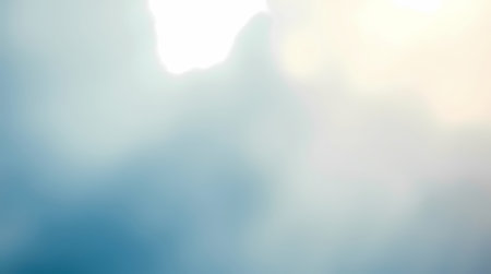 Softly focused white and pale yellow clouds create a serene, airy atmosphere with a gentle luminous glow from the sun.