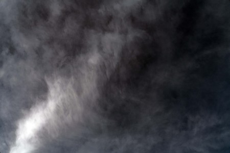 A soft, diffused beam of light illuminates a dark, smoky, or cloudy background, creating a dramatic and atmospheric effect.