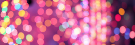 An enchanting multicolor bokeh effect showcasing raining lights and rainbow confetti, blending into a softly blurred background. Perfect for projects needing vibrant, dreamy, or artistic light