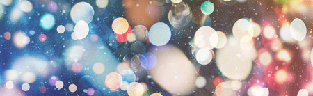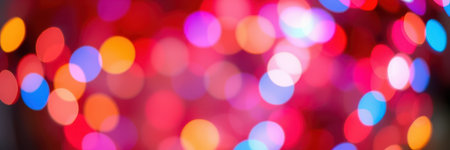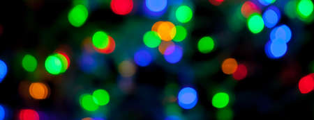 Blurred colorful Christmas lights using as magical background, panoramic view