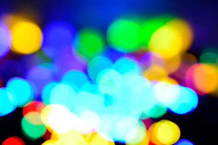 Chistmas background with coloutful bokeh in light and dark blue, yellow, orange, green, purple. Defocused