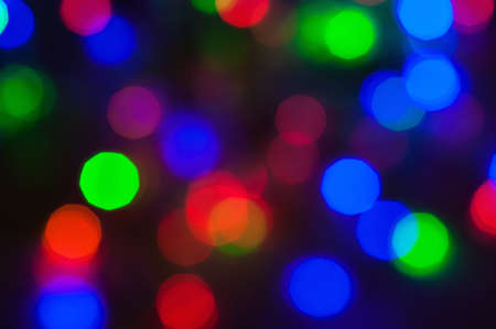 Multi-colored bokeh in neon colors. Good New Year spirit. Bright colours. Blurred focus.