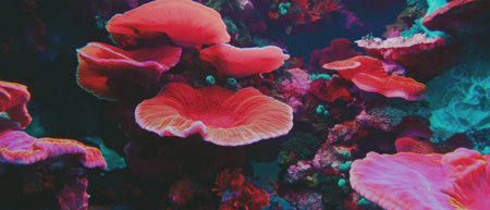 Cinematic pattern texture of a vibrant coral reef viewed from above showcasing marine life diversity