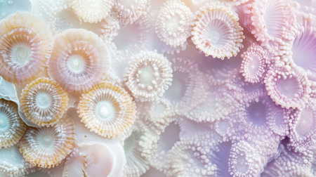 Vibrant macro close up of coral with bokeh effect in pastel colors.