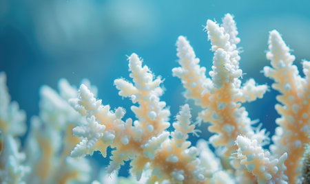 coral reefs thrive in the crystal-clear waters of the ocean, showcasing their vibrant minimal beauty with delicate sea fans and colorful fish darting through the intricate structures, creating a stunning underwater landscape that highlights the importance of marine conservation. ai generated