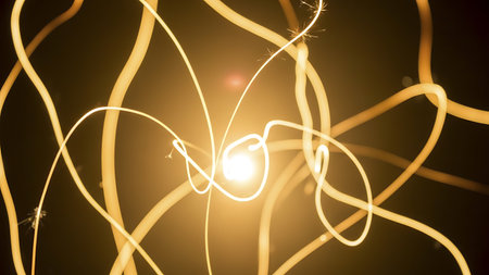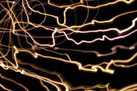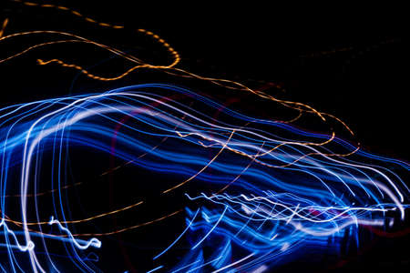 Dynamic motion blur of light trails resembling lightning on a dark background
