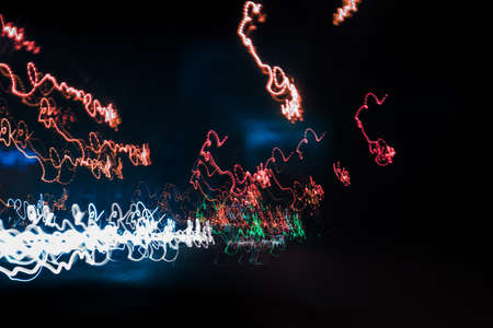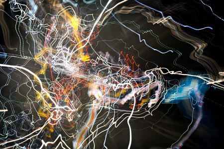 Intentional camera movement, abstract colored light scribbles