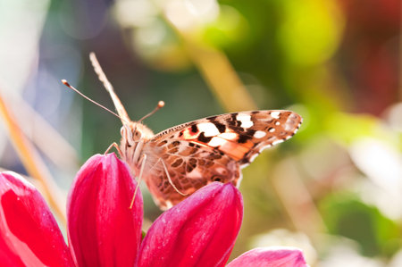 Painted Lady butterfly (Vanessa cardui) sitting on a flower