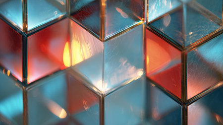 Close-up of abstract glass cubes with soft reflections, creating a modern and artistic visual effect.
