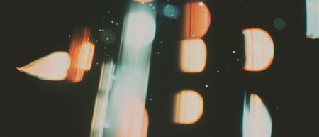 A mesmerizing and stunning display of vibrant light leaks combined with enchanting bokeh effects, beautifully set against a blurred dark background that calls to mind the charm of vintage photography
