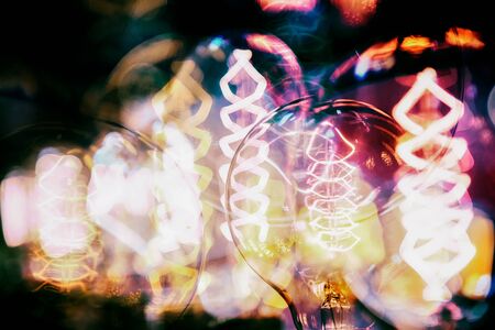 Retro light bulb decor glowing for abstract background. Holiday or party background.