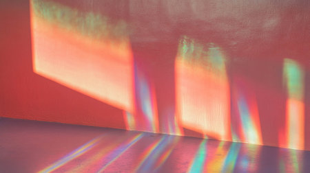Prismatic red wall with rainbow light texture for creative design and decoration
