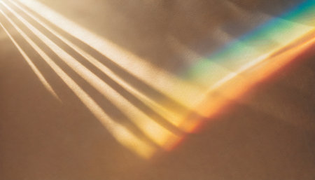 Sunlight through the shadow of a rainbow on the textured paper