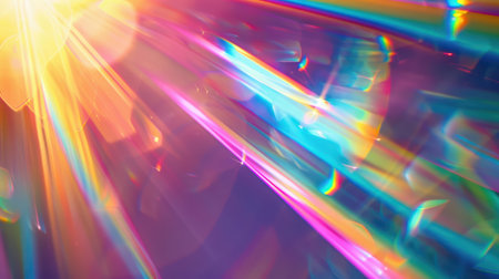 Abstract holographic flare texture, shifting rainbow colors with soft light beams, vibrant and futuristic