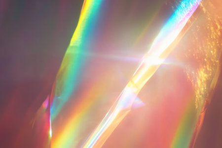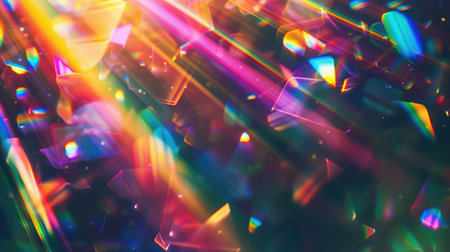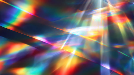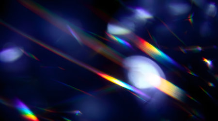 abstract background with rainbow-colored light refractions and glowing prism effects on dark backdrop.