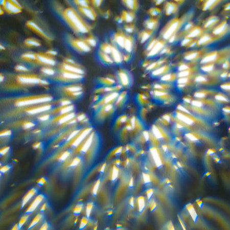 The stunning light reflections from a prism against a dark background create an enchanting display filled with intricate shapes and beautiful bokeh effects that captivate viewers attention