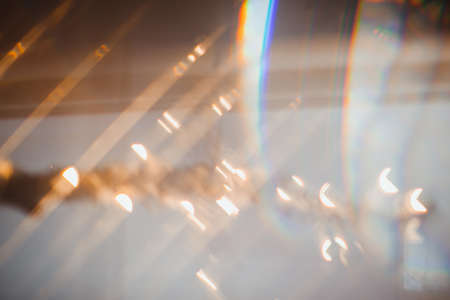 Rainbow light crystal leak selective focus overlay background. Prism glass flare effect texture. Sunlight rays, iridescent prismatic