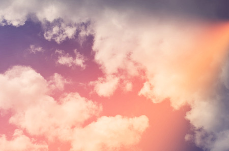 Nature background. Fluffy soft clouds in sky toned